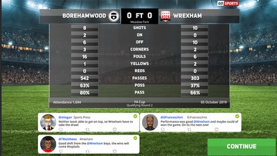 En Club Soccer Director 2020, el motor de estadísticas refleja los comportamientos reales de los jugadores e imita sus resultados, procesando unas 1000 decisiones por partida y generando estadísticas en tiempo real para cada jugador y equipo.
